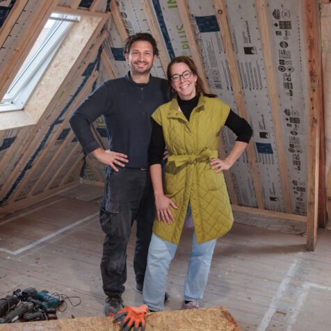 “Door mijn vastgoedkundige achtergrond en liefde voor de natuur hebben we een voorkeur voor duurzame en natuurlijke materialen. Biobased isolatie ademt beter”, legt Pieter-Bart uit. “Het reguleert vocht, voorkomt schimmel en zorgt voor een gezond binnenklimaat.”